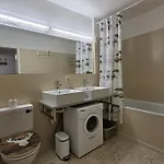 The apartment features a bathroom with towels.